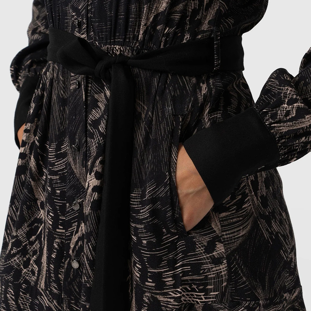 Play into the dark hues of the pattern by pairing your Feather Spot shirt with black jeans or wide-leg trousers. If it’s a skirt you’ve chosen, opt for a black tee or jumper like the Suki Sweater, and if you’re styling the mini dress, wear it with tights and the Kansas Western Boots for a tonally chic look.